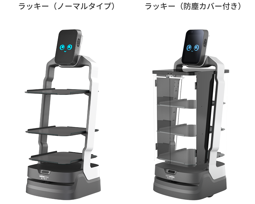 ラッキーのトレイサイズは、43cm×50cmで配膳ロボットの中でも最大サイズとなります。また全方向解放されているので多少はみ出しても商品を置く事ができます。