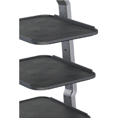 トレーサイズ43cm×50cmで、 最大40キロ積載可能です。3層か4層を設置でき、8段階で高さ調整も可能です。全開放のデザインなので、トレイ上の商品の取り出しが簡単です。オプションで防塵カバーの取り付けも可能です。